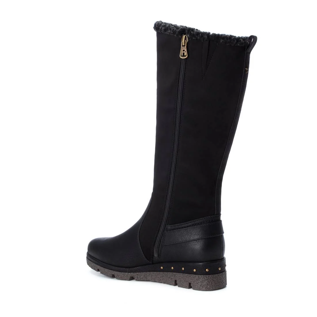 Bota alta de mujer con cremallera lateral. Pequeña cuña de goma de 3 cm que le aporta un gran confort. Pelo en el interior. Suela de goma.