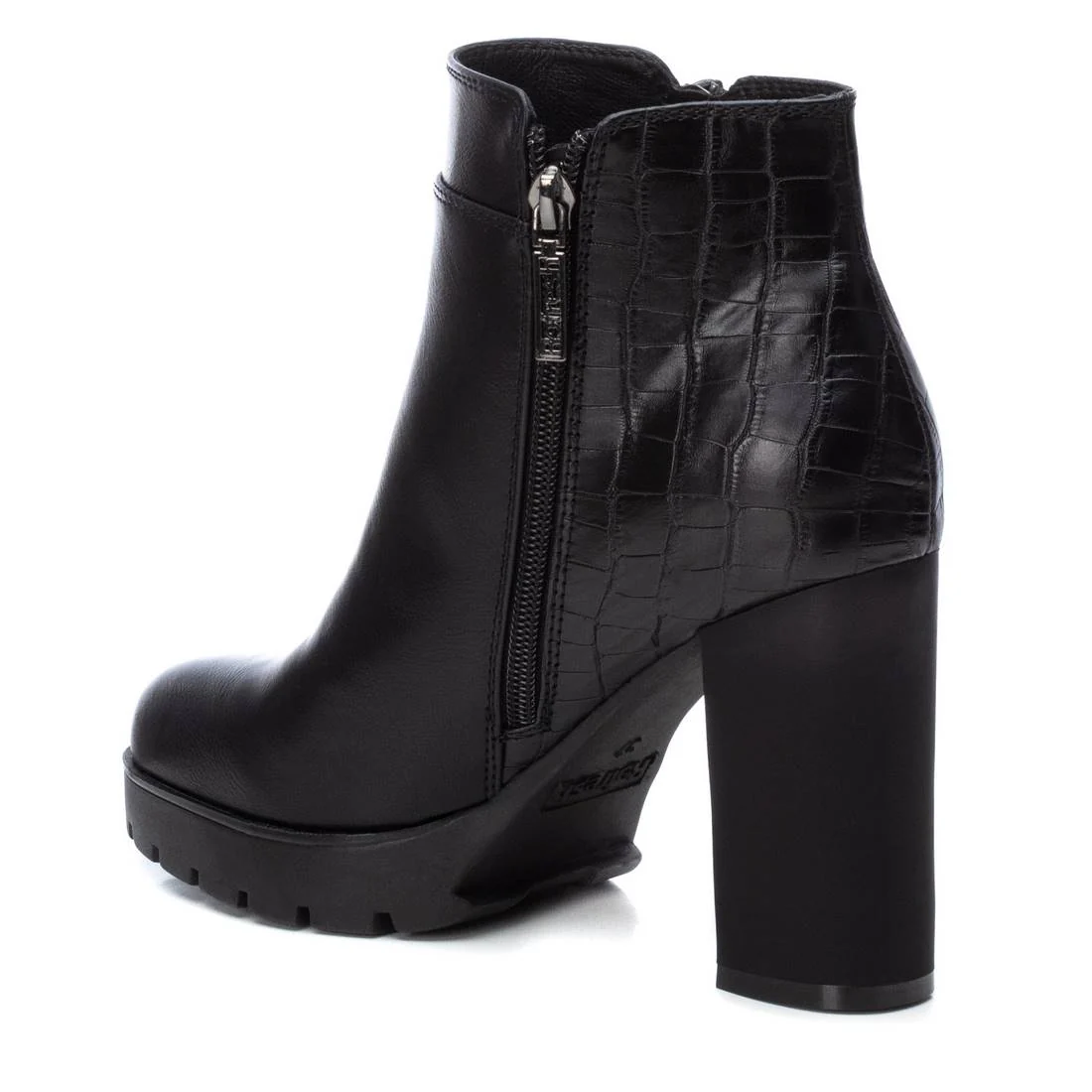 Botín de mujer, de la marca Refresh. Fabricado en material que imita la piel combinado con efecto coco. Cierre mediante cremallera interna. Tacón ancho de 10 cm con plataforma delantera. Suela de goma antideslizante. Cremallera lateral decorativa. Combinalo con tus mejores looks esta temporada. Este modelo ha obtenido el certificado vegano por la organización mundial PETA (Organización de los derechos de los animales).