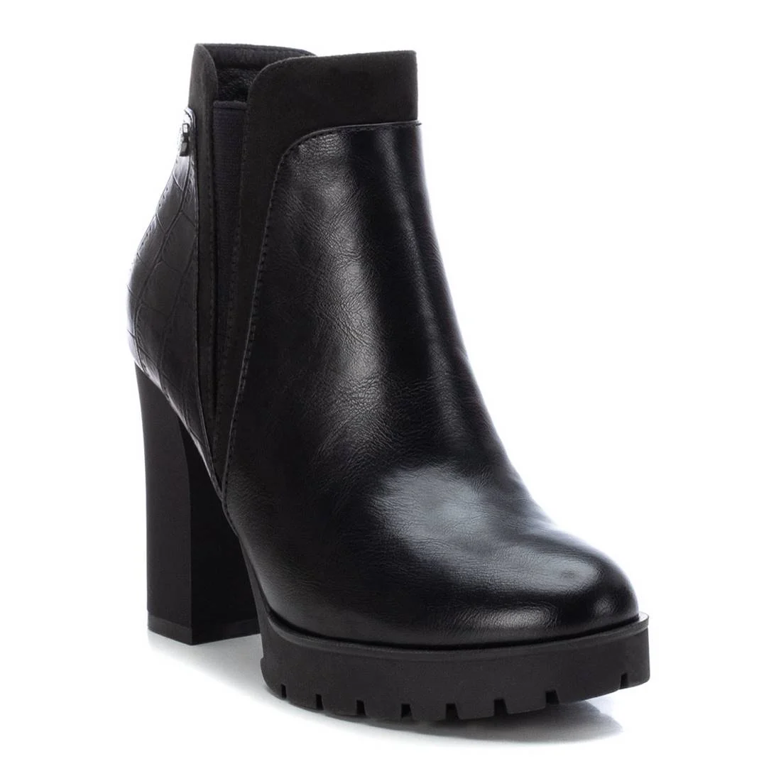 Botín de mujer, de la marca Refresh. Fabricado en material que imita la piel. Cierre mediante cremallera lateral. Tacón ancho de 9 cm con plataforma delantera para mayor comodidad. Suela de goma antideslizante. Este modelo ha obtenido el certificado vegano por la organización mundial PETA (Organización de los derechos de los animales).