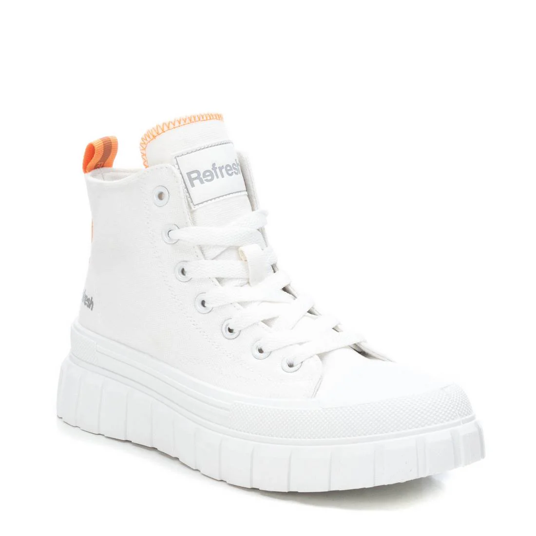 Botín deportivo de mujer, de la marca Refresh. Fabricado en lona. Cierre mediante cremallera y cordones ajustables con tirador trasero para facilitar la puesta. Suela volumen de goma antideslizante. Un modelo con colores en tendencia, escoge tu favorito y dale color a tus looks de la temporada. Este modelo ha obtenido el certificado vegano por la organización mundial PETA (Organización de los derechos de los animales).