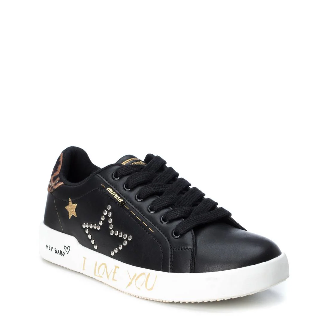 Zapatilla de mujer estilo casual con detalles decorativos que le aportan un diseño muy original. Suela de goma de 3 cm y cordones al tono.